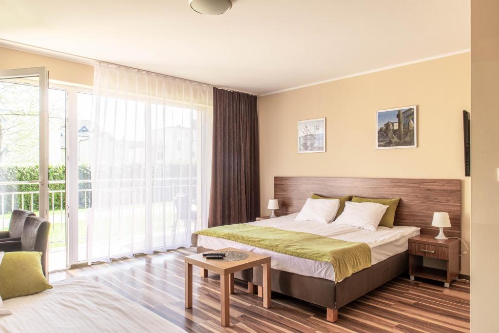 Rodzinny apartament typu Suite. This suite includes 1 living room, 2 separate bedrooms and 1 bathroom with a shower. Guests will find a refrigerator, kitchenware and a microwave in the kitchen. The suite also features a barbecue. Boasting a terrace, this suite also offers a wardrobe, an electric kettle and a flat-screen TV. The unit has 5 beds. Apartament typu Suite - 5 osobowy. Powierzchnia pokoju ok.: 50 mkw. ;