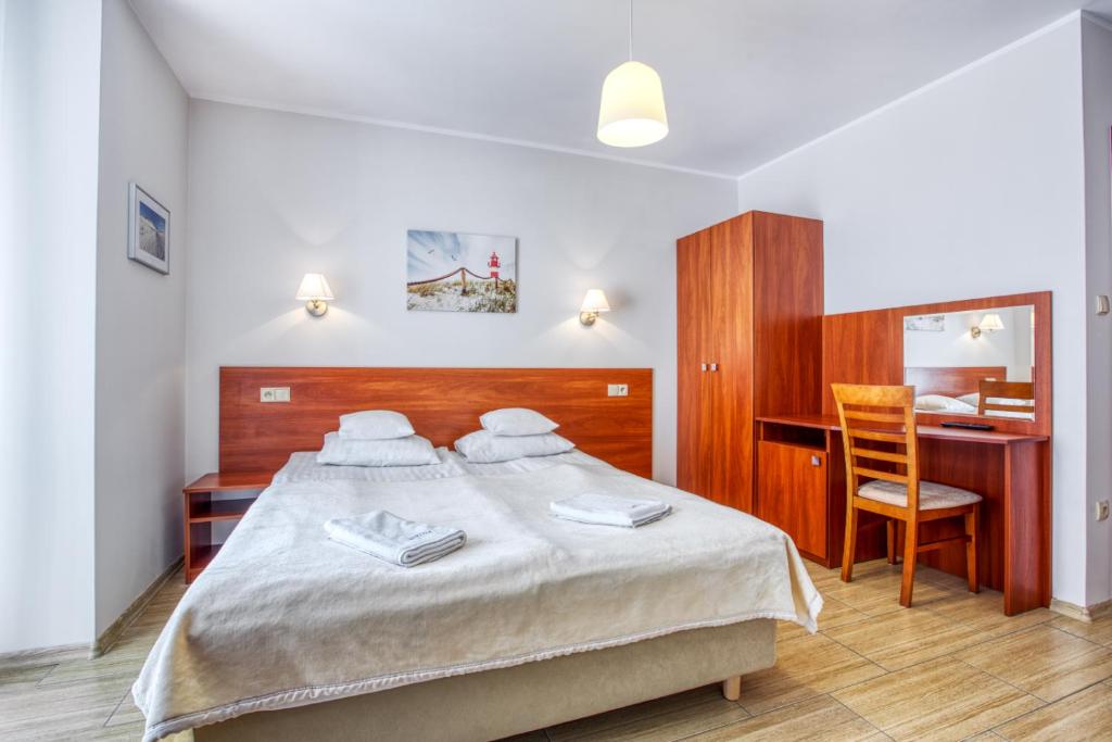 Pokój Czteroosobowy z balkonem. Providing free toiletries, this quadruple room includes a private bathroom with a shower and a hairdryer. This quadruple room features a wardrobe, an electric kettle, flat-screen TV, as well as chocolate for guests. The unit offers 3 beds. Pokój Czteroosobowy - 4 osobowy. Powierzchnia pokoju ok.: 30 mkw.