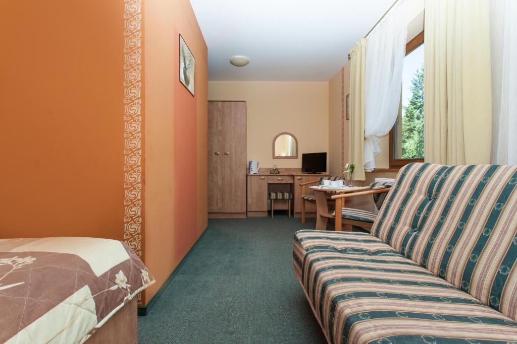 Pokój jednoosobowy typu Standard z prysznicem. Guests will have a special experience as the single room features a sauna. Providing free toiletries, this single room includes a private bathroom with a walk-in shower. The single room provides a flat-screen TV, a wardrobe, an electric kettle, a sofa as well as garden views. The unit offers 1 bed. Pokój Jednoosobowy - 1 osobowy. Powierzchnia pokoju ok.: 20 mkw.