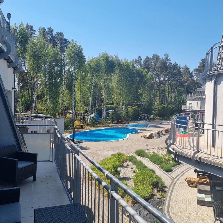 Apartament z 1 sypialnią. This apartments standout feature is the private pool. This apartment includes 1 living room, 1 separate bedroom and 1 bathroom with a bath and a shower. In the well-fitted kitchen, guests will find a stovetop, a refrigerator, a dishwasher and kitchenware. The apartment has parquet floors, a seating area with a flat-screen TV, a washing machine, a tea and coffee maker as well as pool views. The unit has 3 beds. Apartament - 5 osobowy. Powierzchnia pokoju ok.: 55 mkw.