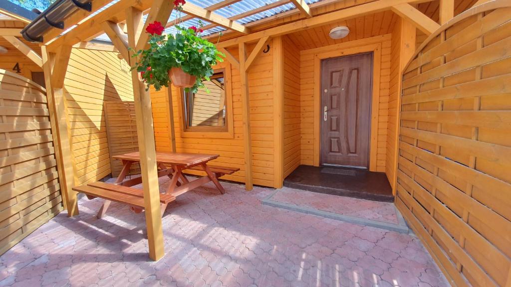 Domek z 1 sypialnią. Boasting a private entrance, this chalet includes 1 living room, 1 separate bedroom and 1 bathroom with a shower and a hairdryer. In the well-equipped kitchenette, guests will find a stovetop, a refrigerator, kitchenware and a microwave. Featuring a terrace with a quiet street view, this chalet also offers a tea and coffee maker and a flat-screen TV with cable channels. The unit has 3 beds. Domek - 4 osobowy. Powierzchnia pokoju ok.: 22 mkw. ;