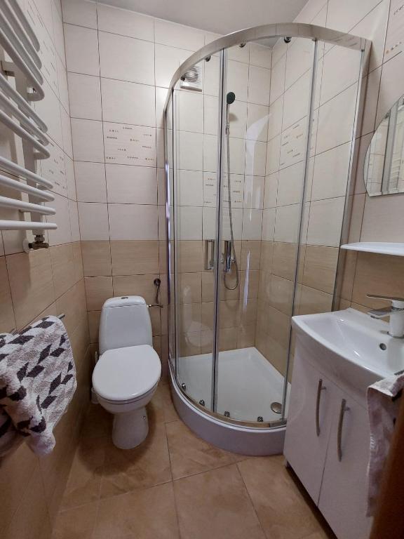 Apartament z 1 sypialnią. Boasting a private entrance, this apartment also comes with 1 separate bedroom and 1 bathroom with a shower. Meals can be prepared in the well-fitted kitchenette, which features a stovetop, a refrigerator, kitchenware and a microwave. The apartment features a flat-screen TV, a wardrobe, an electric kettle, heating as well as garden views. The unit has 2 beds. Apartament - 3 osobowy. Powierzchnia pokoju ok.: 24 mkw.