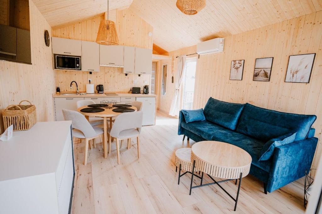 Domek z 1 sypialnią. This chalet comes with 1 living room, 1 separate bedroom and 1 bathroom with a walk-in shower and free toiletries. Guests will find a stovetop, a refrigerator, a dishwasher and kitchenware in the well-fitted kitchenette. The chalet also includes a barbecue. Boasting a terrace with garden views, this chalet also features air conditioning and a flat-screen TV. The unit has 3 beds. Domek - 5 osobowy. Powierzchnia pokoju ok.: 36 mkw.