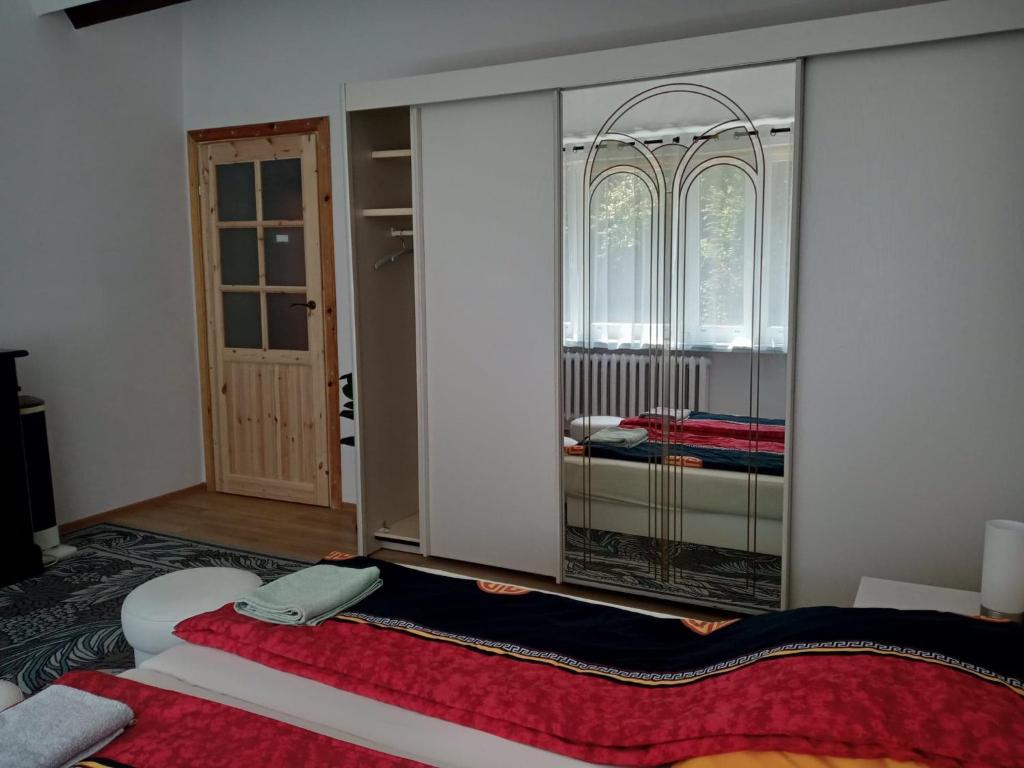 W sypialni znajduje się pościel 🛏️, a także szafa lub garderoba, gdzie można przechować swoje rzeczy. Dla gości dostępne są gniazdka koło łóżka ⚡ oraz wieszak na ubrania 🧥, co zwiększa komfort pobytu. W każdym pokoju znajduje się także suszarka na ubrania, co jest bardzo wygodne po praniu.
