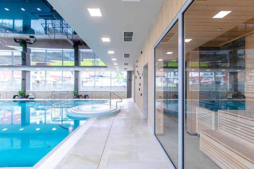 Apartament typu studio. This apartments special features are the private pool and the sauna. Meals can be prepared in the well-fitted kitchenette, which has a stovetop, a refrigerator, a dishwasher and kitchenware. The apartment offers a washing machine, a private entrance, as well as a private bathroom boasting a shower and a hairdryer. The unit has 2 beds. Apartament - 4 osobowy. Powierzchnia pokoju ok.: 35 mkw.