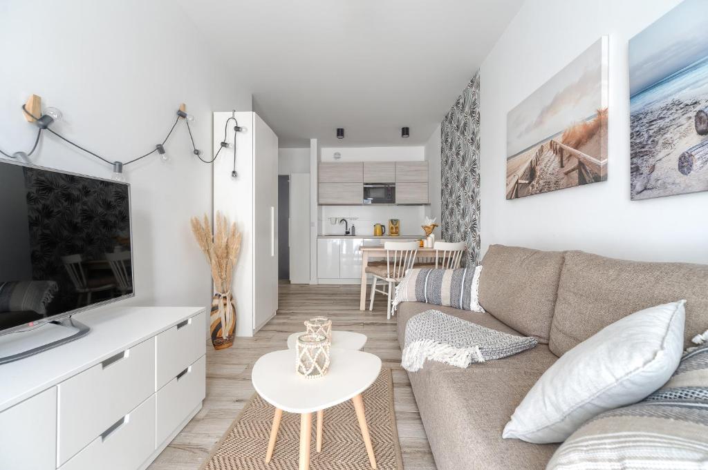 Apartament z 1 sypialnią. This apartment features 1 living room, 1 separate bedroom and 1 bathroom with a shower and free toiletries. Guests can make meals in the kitchenette that has a stovetop, a refrigerator, a dishwasher and kitchenware. Boasting a terrace with sea views, this apartment also features a tea and coffee maker and a flat-screen TV. The unit has 2 beds. Apartament - 4 osobowy. Powierzchnia pokoju ok.: 36 mkw.