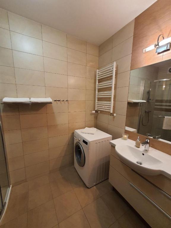 Apartament z 1 sypialnią. This apartments standout features are the private pool and sauna. This apartment includes 1 living room, 1 separate bedroom and 1 bathroom with a shower and a hairdryer. The fully equipped kitchenette has a stovetop, a refrigerator, a dishwasher and kitchenware. Boasting a balcony with pool views, this apartment also offers a washing machine and a flat-screen TV. The unit has 2 beds. Apartament - 4 osobowy. Powierzchnia pokoju ok.: 51 mkw.