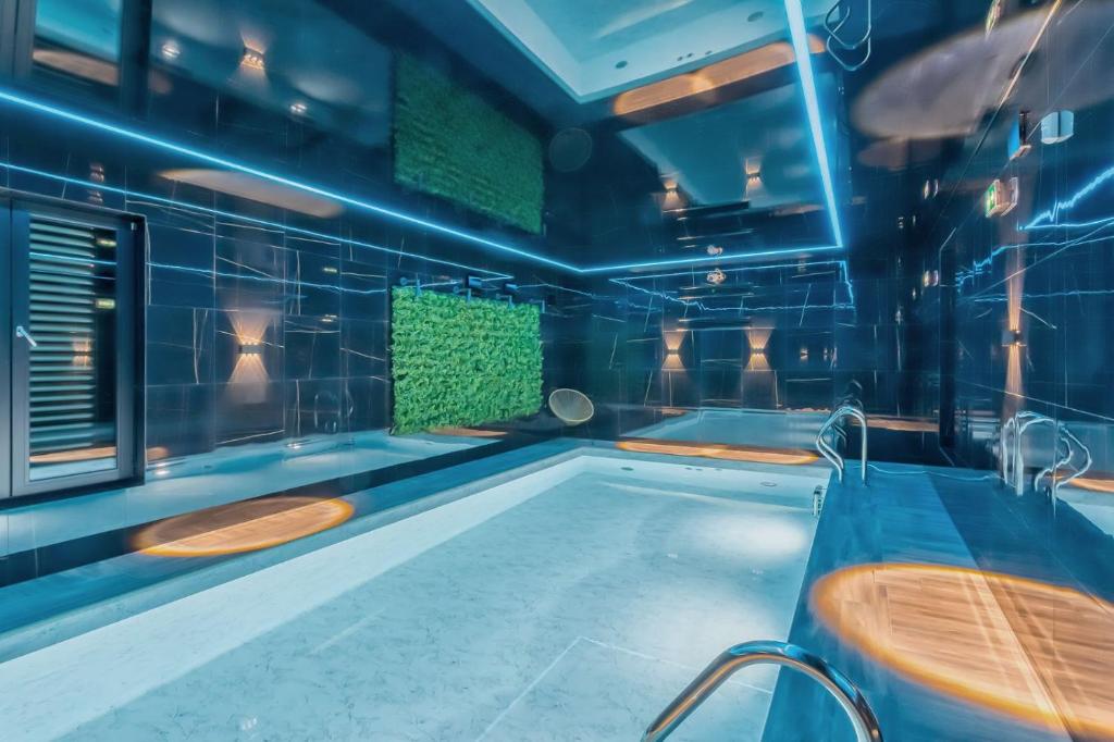 Apartament. Apartament dysponuje prywatnym basenem i sauną. Apartament mieści salon, oddzielną sypialnię oraz łazienkę z prysznicem i bezpłatnym zestawem kosmetyków. Udogodnienia obejmują aneks kuchenny z płytą kuchenną, lodówką, zmywarką do naczyń i przyborami kuchennymi. Goście mają do dyspozycji sprzęt do grillowania. Ten klimatyzowany apartament oferuje telewizor z płaskim ekranem i dostępem do kanałów kablowych, pralkę, ekspres do kawy, część wypoczynkową oraz widok na cichą ulicę. Ta opcja zakwaterowania zapewnia 2 łóżka. Apartament - 4 osobowy. Powierzchnia pokoju ok.: 31 mkw. ;