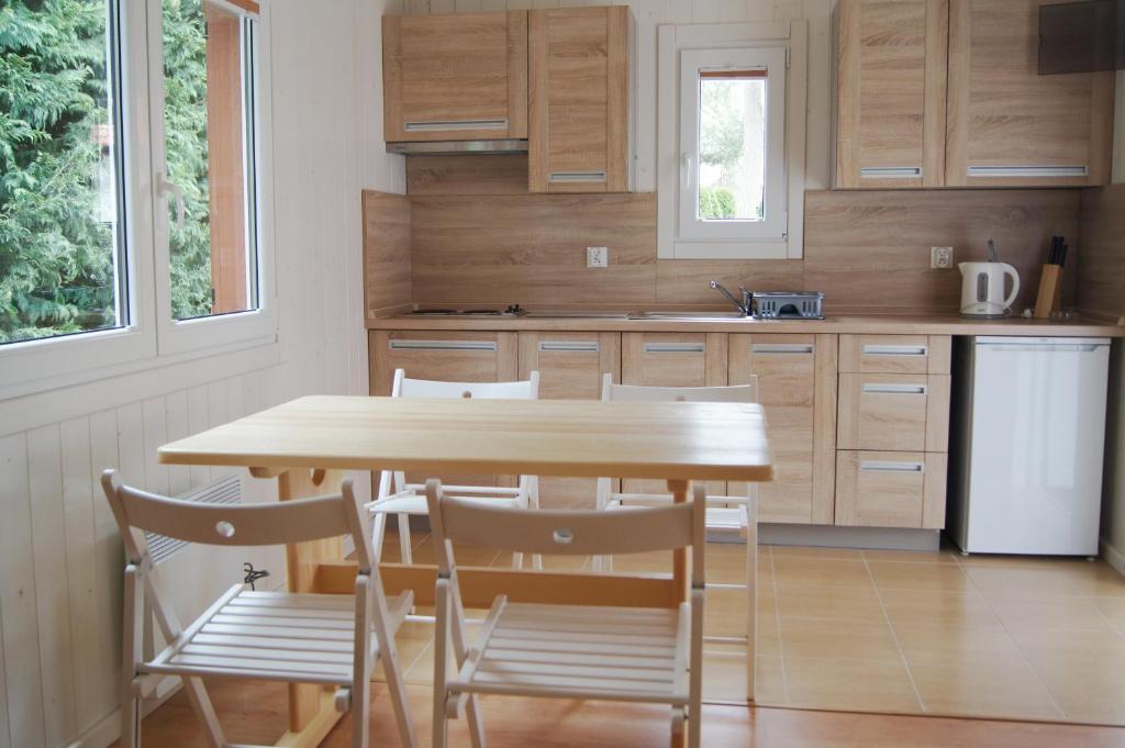 Domek z 2 sypialniami. Boasting a private entrance, this chalet also features 1 living room, 2 separate bedrooms and 1 bathroom with a walk-in shower. Guests will find a stovetop, a refrigerator, kitchenware and an electric kettle in the well-equipped kitchen. The chalet also comes with a barbecue. Featuring a terrace with garden views, this chalet also features a seating area and a flat-screen TV with cable channels. The unit has 4 beds. Domek - 4 osobowy. Powierzchnia pokoju ok.: 35 mkw.
