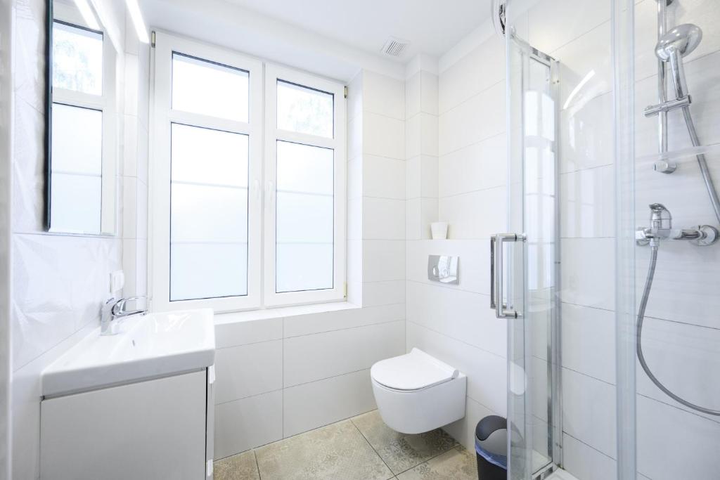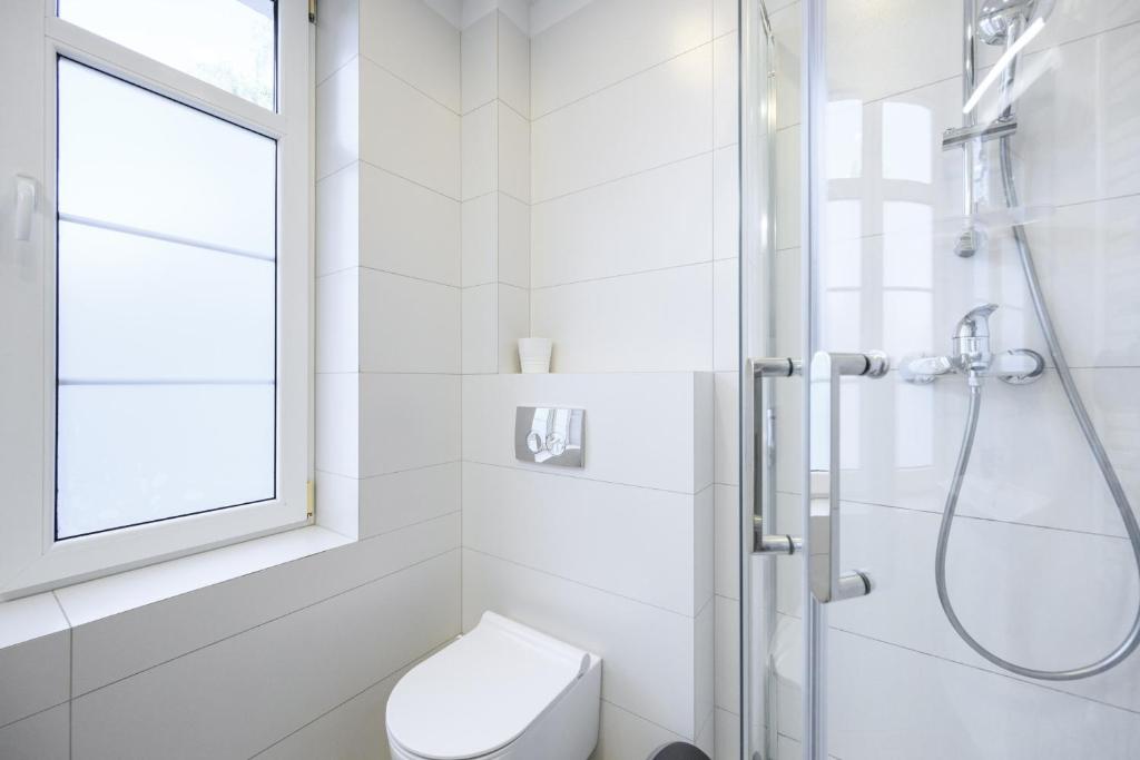 Studio. The studio features a dining area, a wardrobe, as well as a private bathroom boasting a shower and a hairdryer. Guests can make meals in the kitchenette that features a stovetop, a refrigerator, kitchenware and an electric kettle. This studio provides heating, a flat-screen TV and a quiet street view. The unit has 2 beds. Studio - 3 osobowy. Powierzchnia pokoju ok.: 21 mkw.