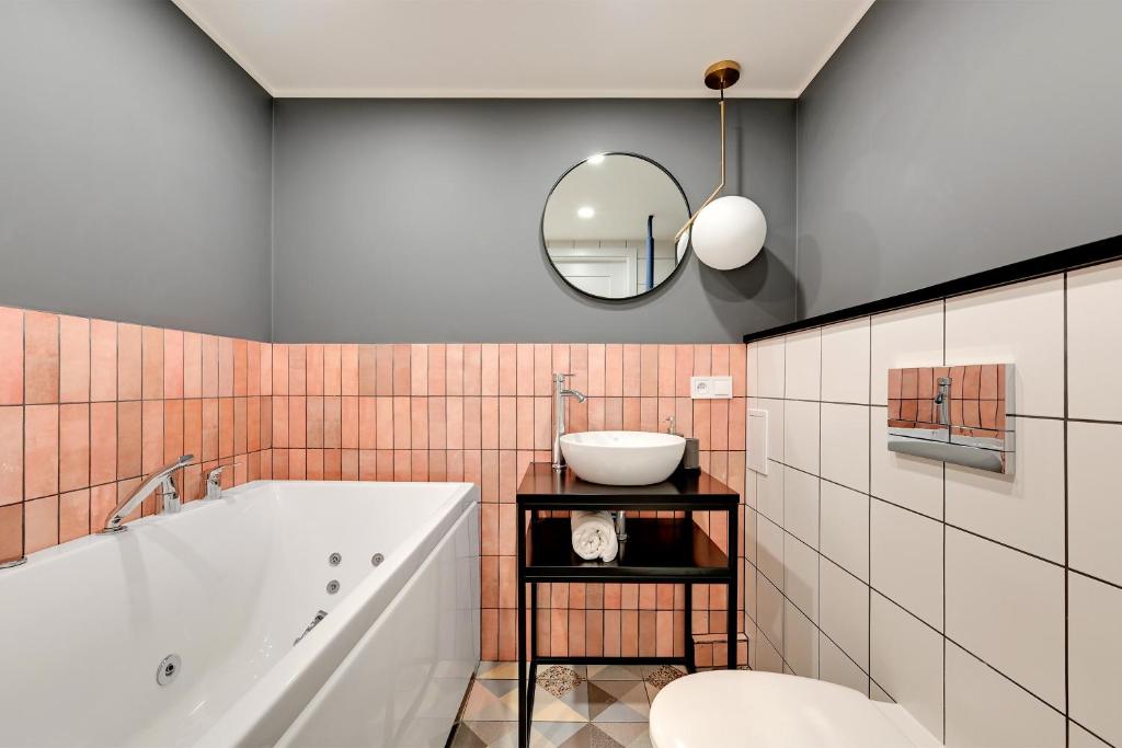 Oferta apartamentu obejmuje sypialnię (1), salon, aneks kuchenny z pełnym wyposażeniem, w tym lodówką i ekspresem do kawy, a także łazienkę (1) z wanną oraz bezpłatnym zestawem kosmetyków. W apartamencie zapewniono ręczniki i pościel.
