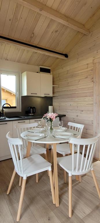 Dom z 2 sypialniami. Guests will find a stovetop, a refrigerator, kitchenware and a toaster in the well-fitted kitchen. The holiday home also features a barbecue. The holiday home offers a private entrance, a tea and coffee maker, a terrace with garden views as well as a shared bathroom boasting a shower. The unit has 4 beds. Dom wakacyjny - 4 osobowy. Powierzchnia pokoju ok.: 42 mkw.