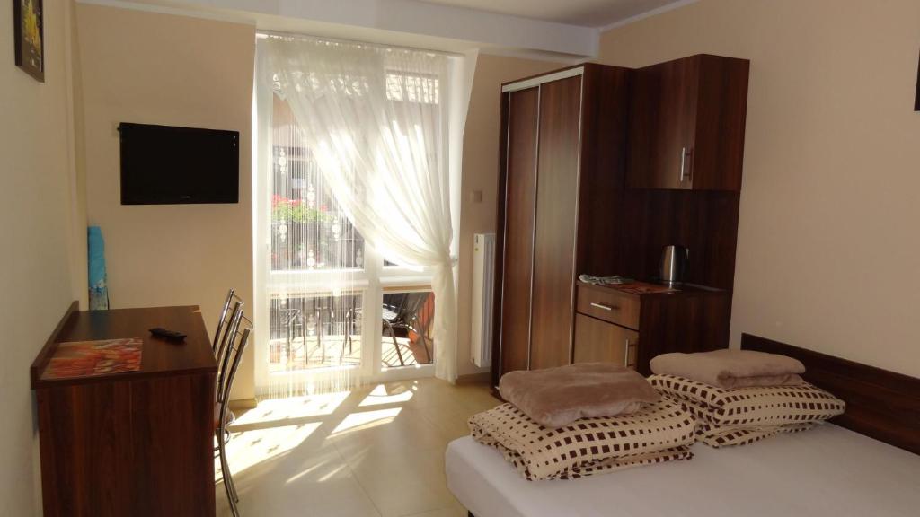Apartament. This apartment features 1 living room, 2 separate bedrooms and 1 bathroom with a shower. Guests can make meals in the kitchen that has a stovetop, a refrigerator, kitchenware and a microwave. This apartment has a tea and coffee maker, a dining area, a flat-screen TV and a terrace. The unit has 3 beds. Apartament - 5 osobowy. Powierzchnia pokoju ok.: 36 mkw. ;