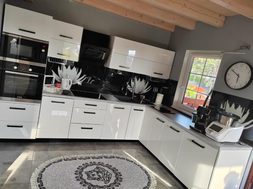 Dom z 2 sypialniami. This holiday homes standout features are the sauna and fireplace. Boasting a private entrance, this holiday home includes 1 living room, 2 separate bedrooms and 1 bathroom with a shower and a hairdryer. Guests will find a stovetop, a refrigerator, a dishwasher and kitchenware in the well-fitted kitchen. The holiday home also features a barbecue. Featuring a terrace with garden views, this holiday home also offers a tea and coffee maker and a flat-screen TV with satellite channels. The unit has 5 beds. Dom wakacyjny - 7 osobowy. Powierzchnia pokoju ok.: 20 mkw. ;