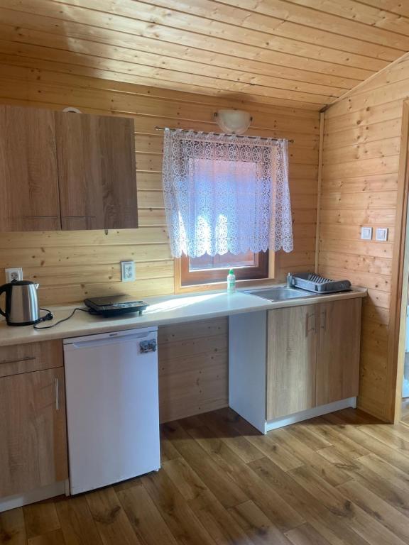 Domek. Featuring a private entrance, this chalet also consists of 1 living room, 1 separate bedroom and 1 bathroom with a bath or a shower. Guests will find a stovetop, a refrigerator, kitchenware and an electric kettle in the kitchenette. The chalet also offers a barbecue. Boasting a terrace with garden views, this chalet also provides a dining area and a flat-screen TV. The unit offers 3 beds. Domek - 5 osobowy. Powierzchnia pokoju ok.: 35 mkw. ;