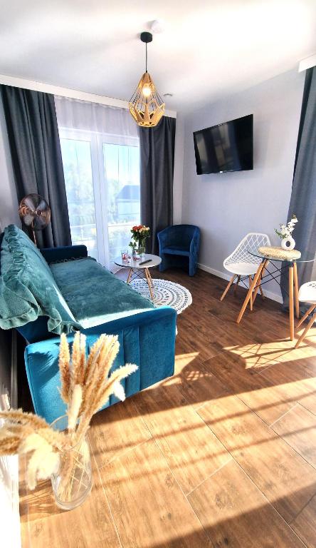 Pokój dwuosobowy z prywatną łazienką. The double room offers a wardrobe and a tiled floor, as well as a private bathroom featuring a walk-in shower. The double rooms kitchenette, which features a refrigerator and kitchenware, is available for cooking and storing food. The double room provides a private entrance, a tea and coffee maker, a dining area, a flat-screen TV, as well as garden views. The unit offers 1 bed. Pokój Dwuosobowy - 2 osobowy. Powierzchnia pokoju ok.: 17 mkw. ;