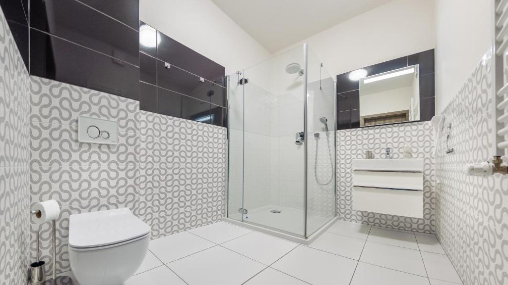 Apartament z 1 sypialnią – Lotnicza 1 K (bez parkingu). Apartament ten obejmuje salon, oddzielną sypialnię oraz łazienkę z prysznicem i suszarką do włosów. W aneksie kuchennym przygotowano płytę kuchenną, zmywarkę do naczyń, lodówkę i przybory kuchenne. Udogodnienia w tym apartamencie z tarasem obejmują część wypoczynkową z telewizorem z płaskim ekranem i ekspres do kawy. W tej opcji zakwaterowania dostępne są 2 łóżka. Apartament - 4 osobowy. Powierzchnia pokoju ok.: 42 mkw. ;