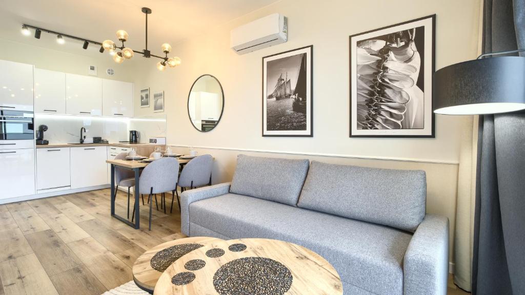 Apartament z widokiem na morze. This air-conditioned apartment consists of 1 living room, 1 separate bedroom and 1 bathroom with a shower. Guests can make meals in the kitchenette that is equipped with a stovetop, a refrigerator, a dishwasher and kitchenware. Featuring a balcony with sea views, this apartment also provides a washing machine and a flat-screen TV with cable channels. The unit offers 2 beds. Apartament - 4 osobowy. Powierzchnia pokoju ok.: 35 mkw. ;