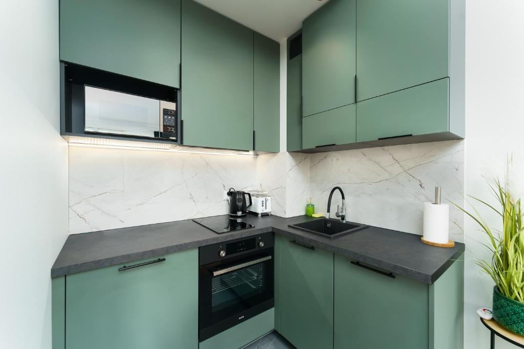 Oferta apartamentu obejmuje sypialnię (1), salon, aneks kuchenny z pełnym wyposażeniem, w tym lodówką i ekspresem do kawy, a także łazienkę (1) z prysznicem oraz bezpłatnym zestawem kosmetyków. W apartamencie zapewniono ręczniki i pościel.