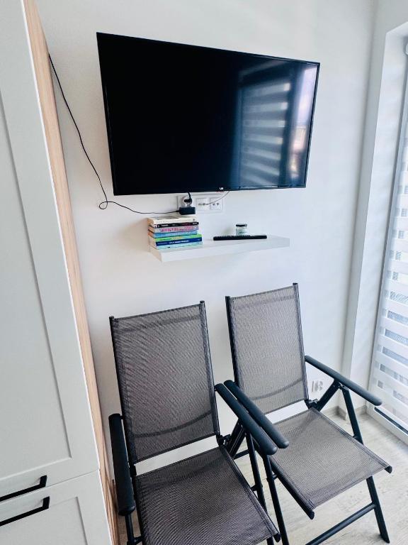 Apartament z 1 sypialnią. This apartment consists of 1 bedroom, kitchenette and 1 bathroom with a shower. The well-fitted kitchenette features a stovetop, a refrigerator, a dishwasher and kitchenware. Featuring a balcony with sea views, this apartment also provides a tea and coffee maker and a flat-screen TV. The unit offers 1 bed. Powierzchnia pokoju ok.: 23 mkw.