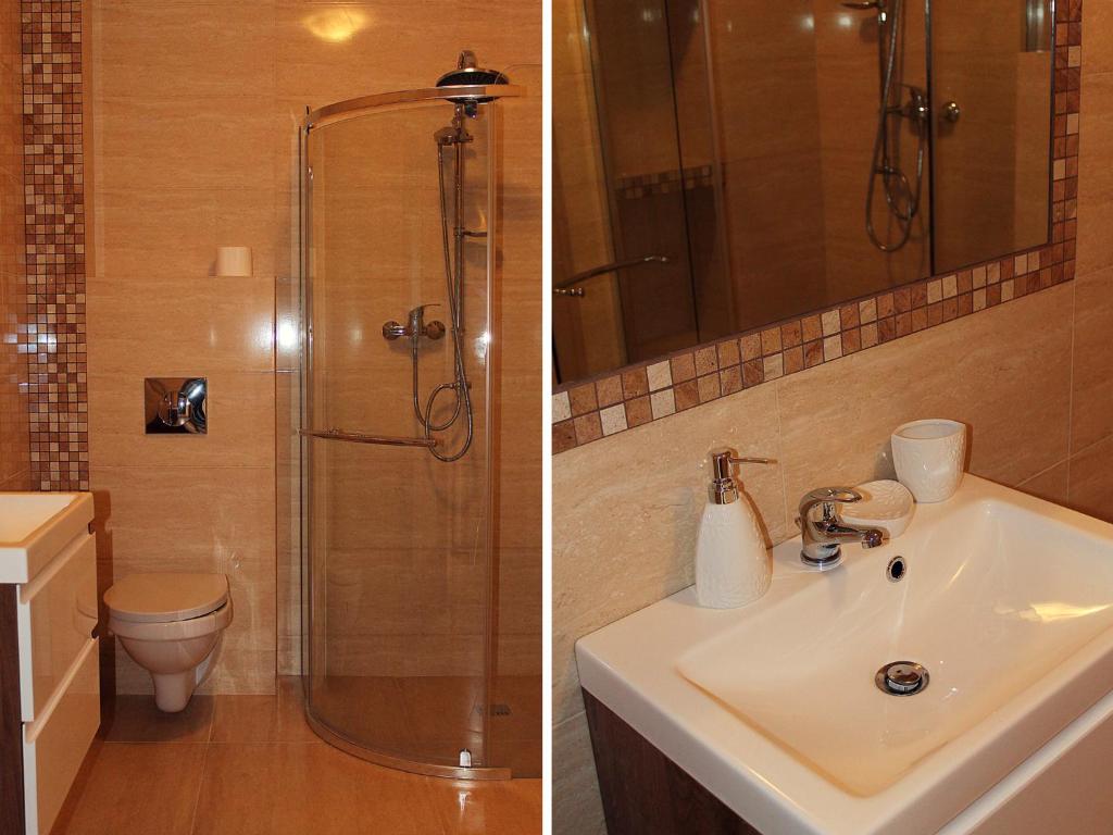 Apartament z 1 sypialnią – 3. Featuring a private entrance, this spacious apartment also comprises 1 living room, 1 separate bedroom and 1 bathroom with a shower. In the well-fitted kitchenette, guests will find a stovetop, a refrigerator, a dishwasher and kitchenware. This apartment features a washing machine, a tea and coffee maker, flat-screen TV with satellite channels, as well as chocolate for guests. The unit offers 2 beds. Apartament - 4 osobowy. Powierzchnia pokoju ok.: 65 mkw. ;