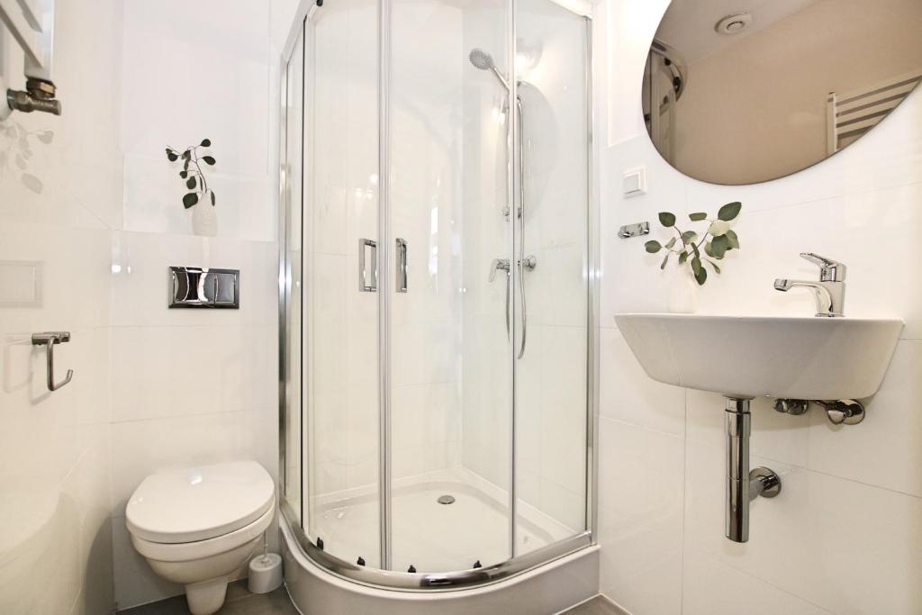 Apartament z 2 sypialniami. This spacious apartment consists of 1 living room, 2 separate bedrooms and 1 bathroom with a shower and a hairdryer. In the kitchenette, guests will find a stovetop, a refrigerator, a dishwasher and kitchenware. The apartment features carpeted floors, a seating area with a flat-screen TV, a tea and coffee maker, a wardrobe as well as ancourtyard view. The unit offers 4 beds. Apartament - 5 osobowy. Powierzchnia pokoju ok.: 90 mkw.