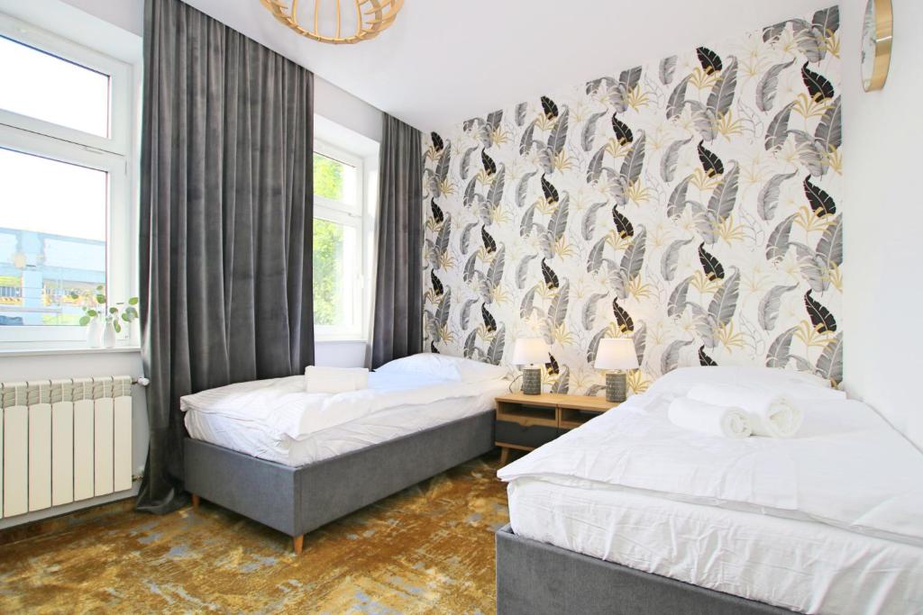 Pokój typu Standard z 2 łóżkami pojedynczymi. The twin room features a wardrobe and a carpeted floor, as well as a private bathroom boasting a shower. The unit has 2 beds. Pokój z 2 łóżkami pojedynczymi - 2 osobowy. Powierzchnia pokoju ok.: 18 mkw. ;