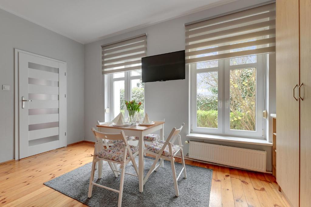Apartament typu studio. Boasting a private entrance, this apartment also features 1 bedroom, a seating area and 1 bathroom with a shower and a hairdryer. A kitchen fitted with a refrigerator, kitchenware and a microwave is available for cooking and storing food. The apartment features a flat-screen TV, a tea and coffee maker, a dining area, a wardrobe as well as garden views. The unit has 2 beds. Apartament - 4 osobowy. Powierzchnia pokoju ok.: 35 mkw.