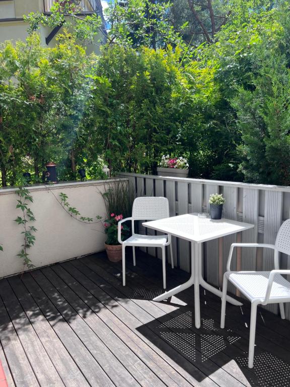 Apartament typu Deluxe. This spacious apartment features 1 living room, 2 separate bedrooms and 1 bathroom with a shower and a hairdryer. The fully equipped kitchenette has a stovetop, a refrigerator, a dishwasher and kitchenware. The apartment features a flat-screen TV with cable channels, a washing machine, soundproof walls, a tea and coffee maker as well as garden views. The unit has 4 beds. Powierzchnia pokoju ok.: 65 mkw. ;