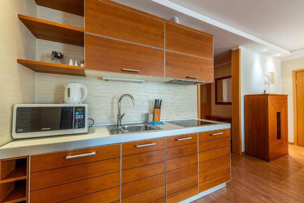 W apartamencie z 1 sypialnią zapewniono salon z telewizorem z płaskim ekranem, kuchnię z pełnym wyposażeniem, w tym lodówką i zmywarką, a także łazienkę (1) z bezpłatnym zestawem kosmetyków. W apartamencie zapewniono ręczniki i pościel.