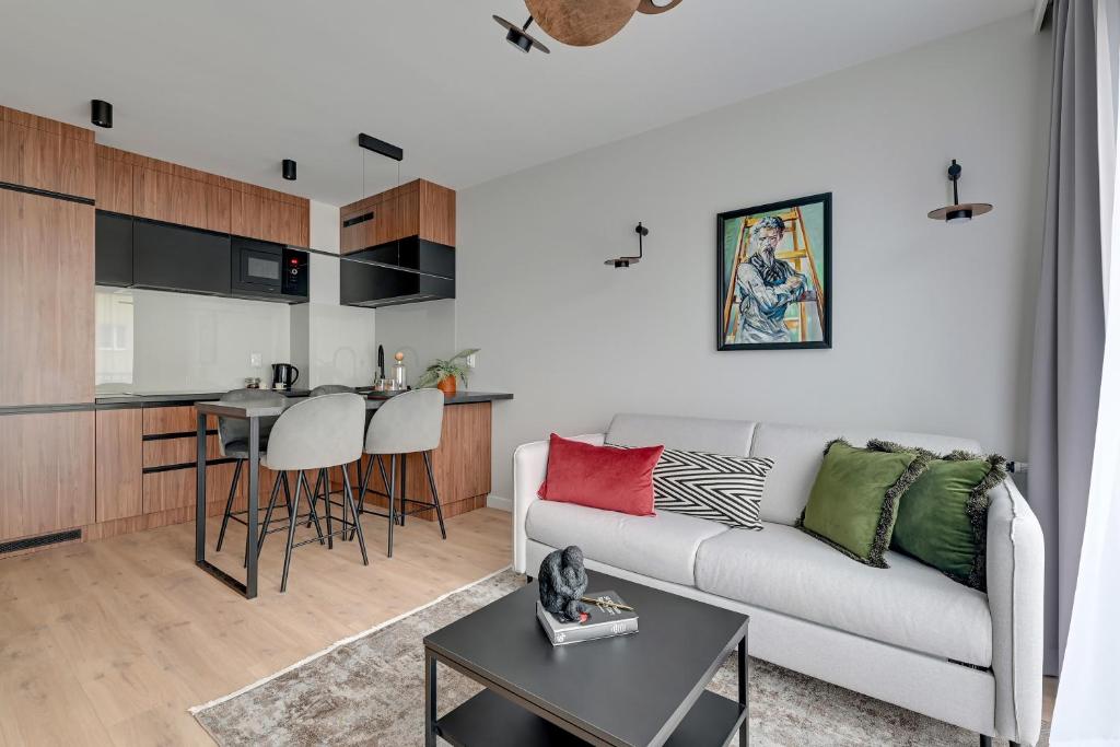 Apartament z 1 sypialnią i balkonem. This air-conditioned apartment comes with 1 living room, 1 separate bedroom and 1 bathroom with a shower. Guests can make meals in the kitchenette that features a stovetop, a refrigerator, a dishwasher and kitchenware. Boasting a balcony, this apartment also features a washing machine, a tea and coffee maker and a flat-screen TV with streaming services. The unit has 2 beds. Powierzchnia pokoju ok.: 30 mkw.