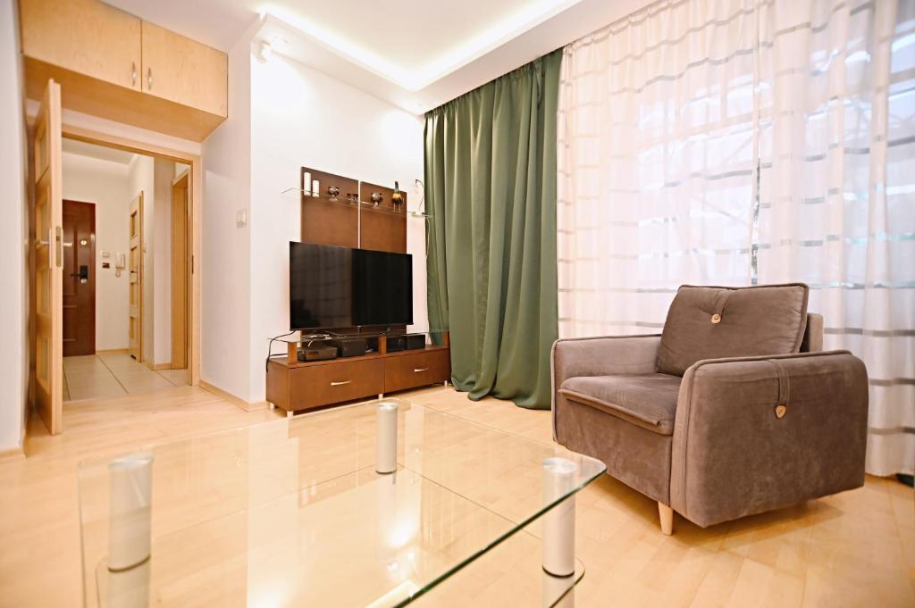 Apartament z 1 sypialnią. This apartment features 1 living room, 1 separate bedroom and 1 bathroom with a shower and a hairdryer. The apartment features a tea and coffee maker, a dining area, a wardrobe, heating and a TV. The unit has 2 beds. Apartament - 5 osobowy. Powierzchnia pokoju ok.: 40 mkw.