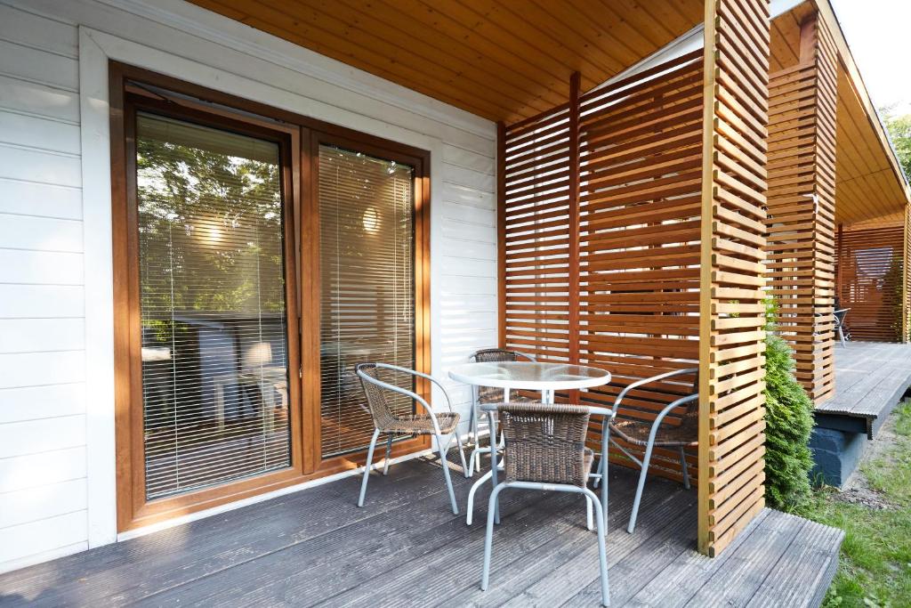 Do dyspozycji Gości są domki dysponujące telewizorem i tarasem. W domkach znajduje się aneks kuchenny z lodówką, czajnikiem elektrycznym oraz stołem, jak również łazienka z prysznicem. Dodatkowe udogodnienia to sofa oraz część wypoczynkowa na świeżym powietrzu. Pościel jest zapewniona.