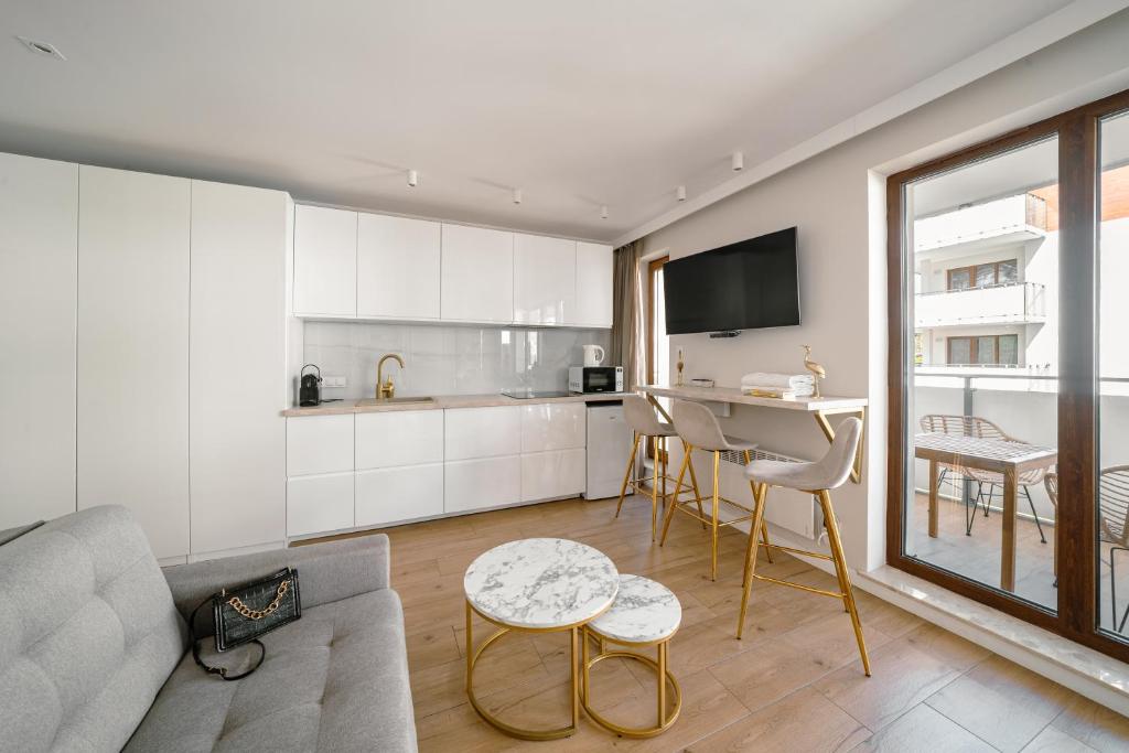 Studio typu Deluxe. In the fully equipped kitchen, guests will find a stovetop, a refrigerator, kitchenware and a microwave. The studio offers air conditioning, a tea and coffee maker, as well as a private bathroom boasting a walk-in shower and a hairdryer. The unit has 2 beds. Studio - 4 osobowy. Powierzchnia pokoju ok.: 24 mkw.