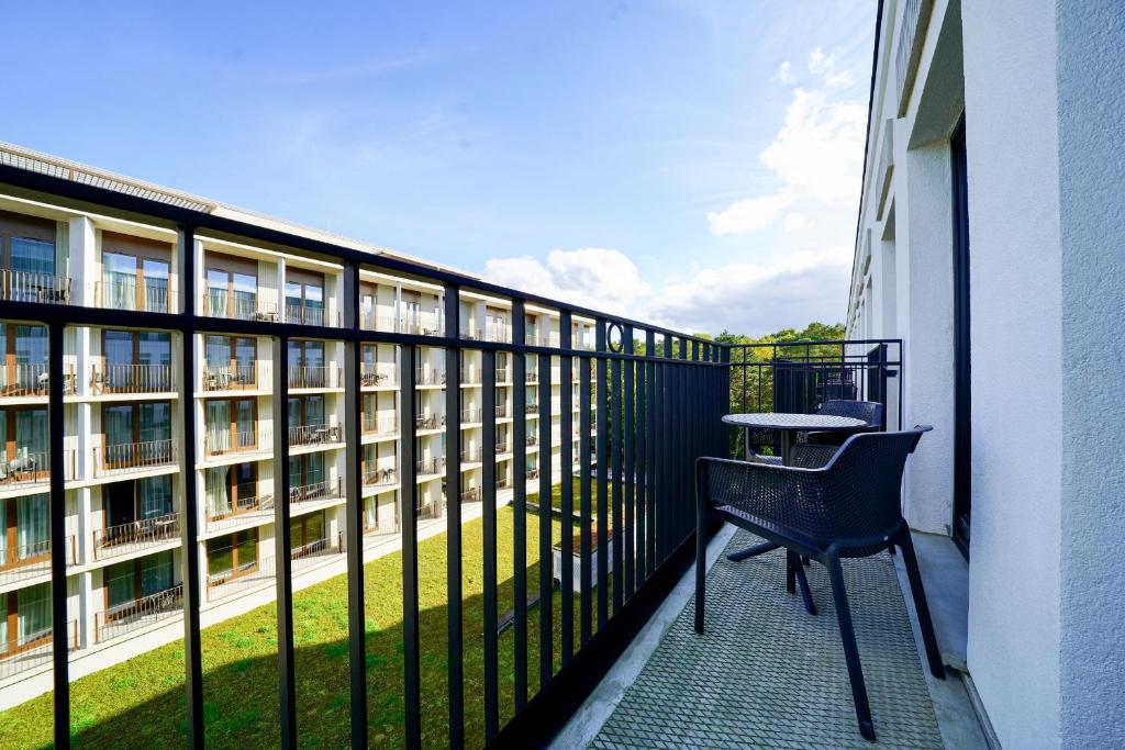 Apartament typu Suite. This suite comprises 1 living room, 1 separate bedroom and 1 bathroom with a shower and a hairdryer. Guests can make meals in the kitchenette that comes with a stovetop, a refrigerator, a dishwasher and kitchenware. This suite features a coffee machine, a wardrobe, a flat-screen TV and a balcony. The unit offers 2 beds. Powierzchnia pokoju ok.: 40 mkw.