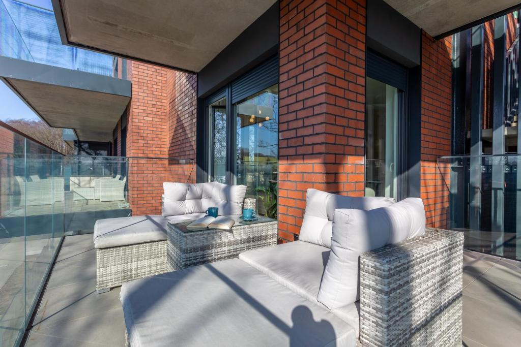 Apartament typu studio – 20. Boasting 1 bedroom, this apartment has 1 bathroom with a walk-in shower, a seating area and terraceyou can relax. Guests can make meals in the kitchenette that features a stovetop, a refrigerator, a dishwasher and kitchenware. The apartment features a tea and coffee maker, a dining area, a wardrobe, a flat-screen TV, as well as river views. The unit offers 2 beds. Apartament - 3 osobowy. Powierzchnia pokoju ok.: 30 mkw. ;