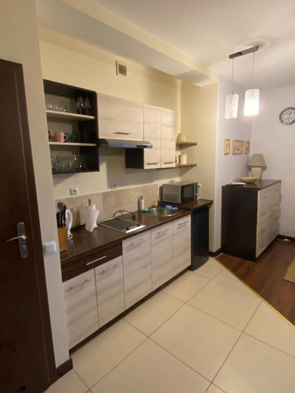 W apartamencie zapewniono sypialnię (1), aneks kuchenny, telewizor z płaskim ekranem, część wypoczynkową oraz łazienkę (1) z prysznicem.