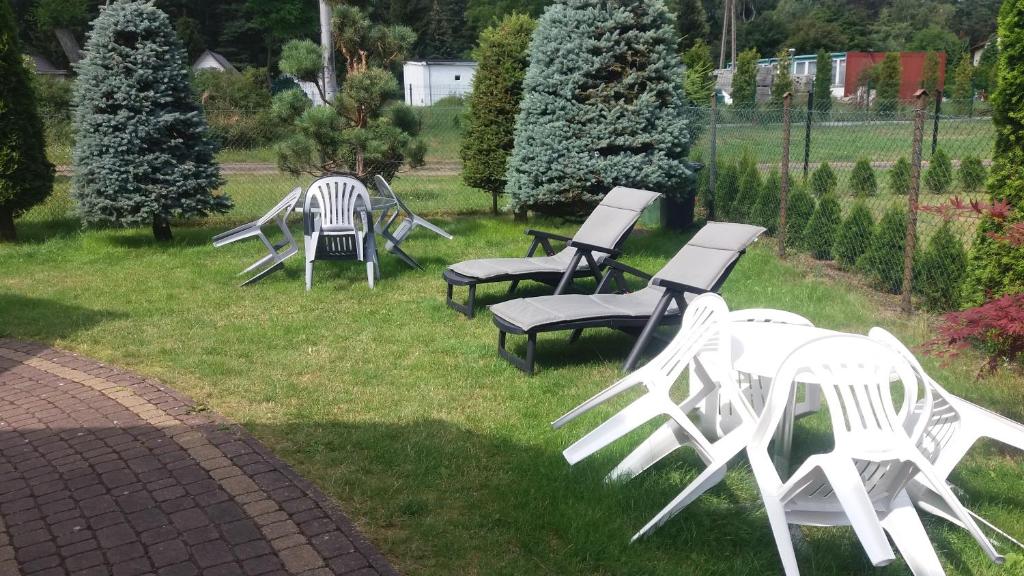 Pokój Czteroosobowy. Guests will find a stovetop, a refrigerator, kitchenware and a microwave in the kitchen. The quadruple room also offers a barbecue. The quadruple room provides a washing machine, a tea and coffee maker, a balcony with garden views as well as a shared bathroom featuring a walk-in shower. The unit offers 3 beds. Pokój Czteroosobowy - 4 osobowy. Powierzchnia pokoju ok.: 15 mkw. ;