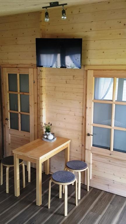 Dom wakacyjny. This air-conditioned holiday home consists of 1 living room, 1 separate bedroom and 1 bathroom with a shower. Guests will find a stovetop, a refrigerator, kitchenware and a microwave in the well-fitted kitchen. The holiday home also offers a barbecue. Featuring a terrace with garden views, this holiday home also provides a seating area and a flat-screen TV. The unit offers 3 beds. Dom wakacyjny - 4 osobowy. Powierzchnia pokoju ok.: 30 mkw. ;