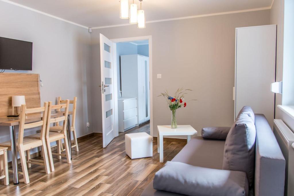 Apartament z 1 sypialnią. Guests will have a special experience as the apartment provides a fireplace. Featuring a private entrance, this apartment consists of 1 living room, 1 separate bedroom and 1 bathroom with a shower and a hairdryer. Guests will find a stovetop, a refrigerator, kitchenware and a tea and coffee maker in the fully equipped kitchenette. The apartment also offers a barbecue. A seating area with a flat-screen TV, soundproof walls and an outdoor dining area are provided in this apartment. The unit offers 2 beds. Apartament - 4 osobowy. Powierzchnia pokoju ok.: 30 mkw. ;