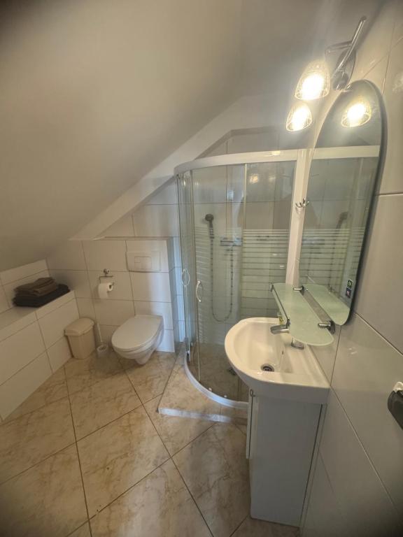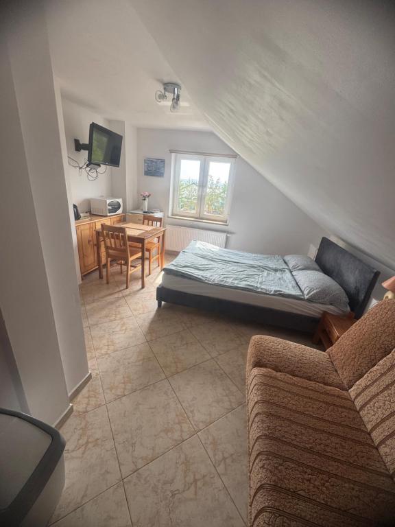 Pokój rodzinny z prywatną łazienką. The family room provides a private entrance and a wardrobe, as well as a private bathroom featuring a shower. The family rooms kitchen is available for cooking and storing food. The family room offers an electric kettle, a sofa, a tiled floor, heating and a flat-screen TV. The unit offers 2 beds. Rodzinny - 4 osobowy. Powierzchnia pokoju ok.: 21 mkw. ;
