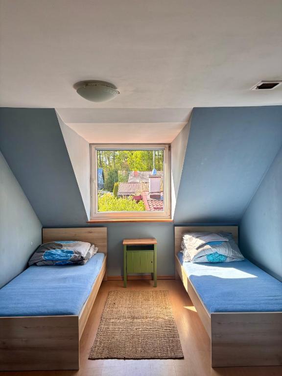 Dom z 4 sypialniami. Guests will have a special experience as the holiday home features a fireplace. The air-conditioned holiday home features 4 bedrooms and 2 bathrooms with a bath and a shower. Guests will find a stovetop, a refrigerator, a dishwasher and kitchenware in the kitchen. The holiday home also offers a barbecue. Featuring a terrace with garden views, this holiday home also provides a washing machine and a flat-screen TV. The unit offers 9 beds. Dom wakacyjny - 10 osobowy. Powierzchnia pokoju ok.: 102 mkw.