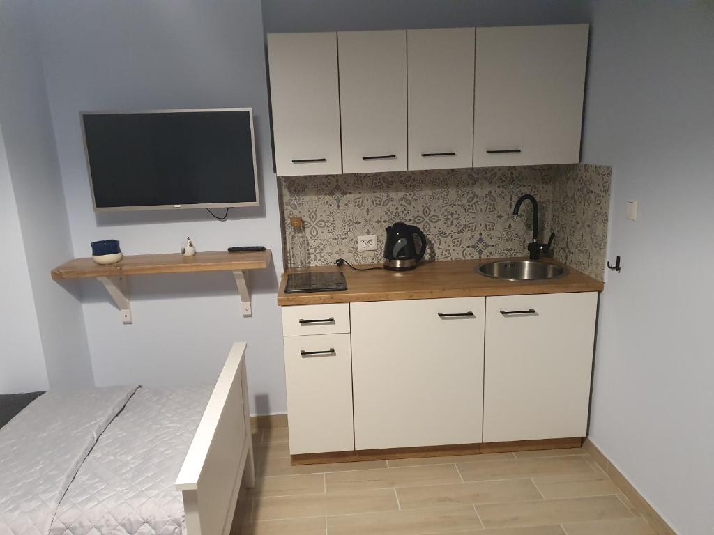 Apartament. This apartment includes 1 living room, 1 separate bedroom and 1 bathroom with a walk-in shower and a hairdryer. In the fully equipped kitchen, guests will find a stovetop, a refrigerator, kitchenware and an electric kettle. This apartment has a dining area, a wardrobe, a flat-screen TV with cable channels and an outdoor dining area. The unit has 2 beds. Apartament - 3 osobowy. Powierzchnia pokoju ok.: 20 mkw. ;