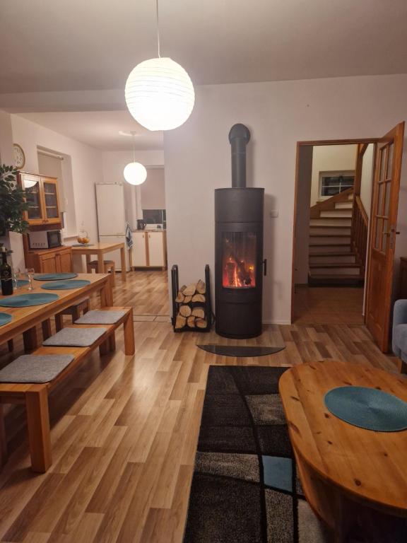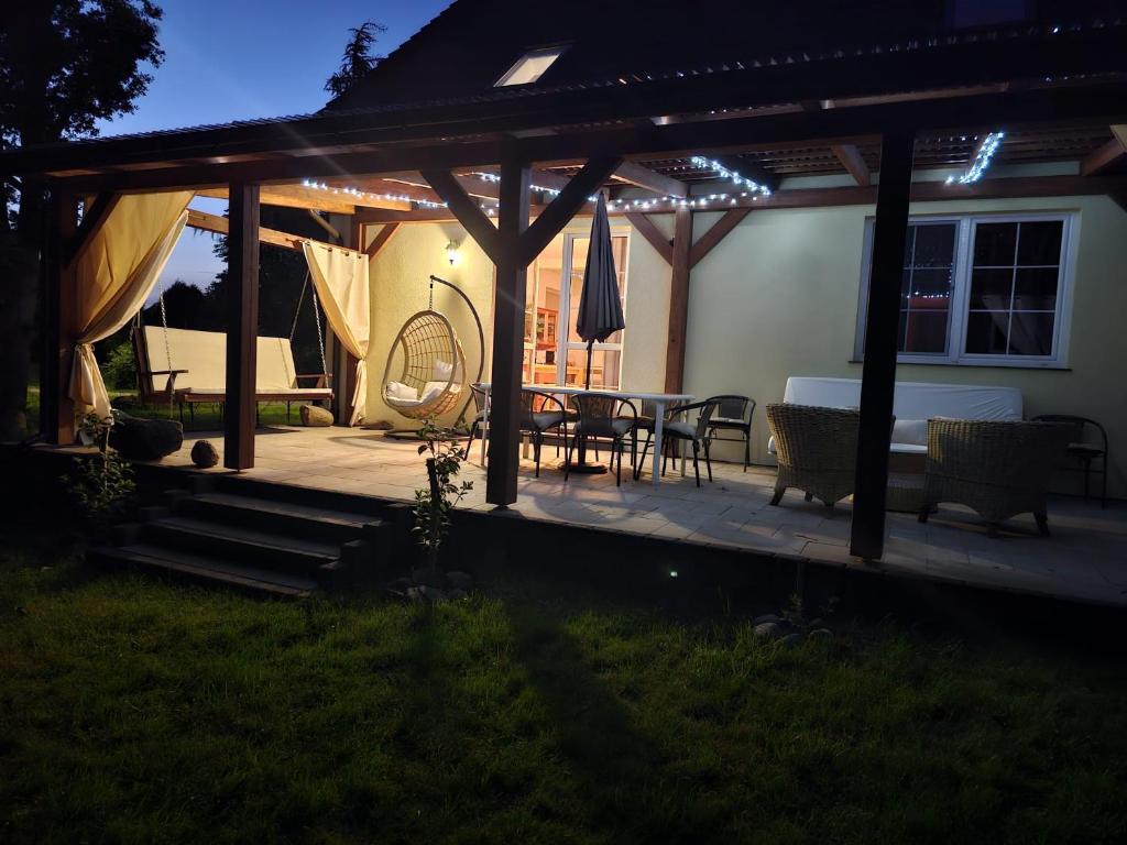 Dom z 4 sypialniami. This holiday homes special feature is the fireplace. Guests will find a refrigerator, a dishwasher, kitchenware and an oven in the fully equipped kitchen. The holiday home also offers a barbecue. The holiday home provides a washing machine, a private entrance, a terrace with garden views as well as a shared bathroom featuring a bath. The unit offers 7 beds. Dom wakacyjny - 8 osobowy. Powierzchnia pokoju ok.: 110 mkw.