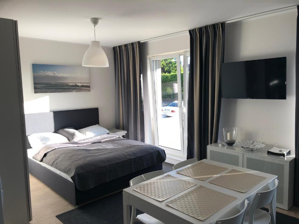 Apartament typu studio. The infinity pool is the standout feature of this apartment. This apartment comes with 1 living room, 1 separate bedroom and 1 bathroom with a walk-in shower and free toiletries. In the fully equipped kitchenette, guests will find a stovetop, a refrigerator, a dishwasher and kitchenware. This apartment has a washing machine, a tea and coffee maker, a flat-screen TV and a terrace. The unit has 3 beds. Apartament - 4 osobowy. Powierzchnia pokoju ok.: 33 mkw.