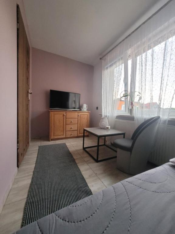 Pokój dwuosobowy. The well-equipped kitchenette features a refrigerator, kitchenware, a microwave and a tea and coffee maker. This double room includes a flat-screen TV with satellite channels, a private bathroom as well as a terrace with garden views. Pokój Dwuosobowy - 2 osobowy. Powierzchnia pokoju ok.: 16 mkw. ;