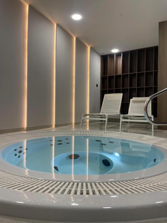 Apartament z 2 sypialniami. Guests will have a special experience as this apartment offers a private pool, a hot tub and a sauna. Meals can be prepared in the kitchenette, which is fitted with a stovetop, a refrigerator, a dishwasher and kitchenware. This apartment has a wardrobe, an electric kettle, a flat-screen TV and a balcony. The unit has 4 beds. Apartament - 4 osobowy. Powierzchnia pokoju ok.: 39 mkw.