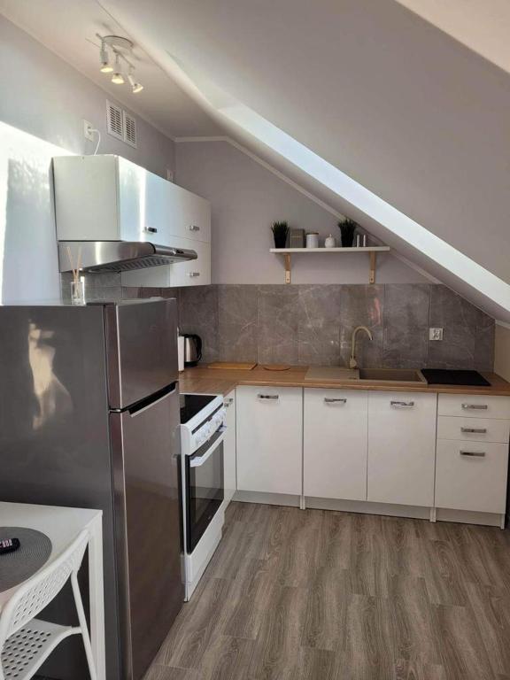 Pokój Dwuosobowy typu Deluxe. The double room offers a seating area, a dining area, as well as a private bathroom featuring a shower and a hairdryer. In the well-fitted kitchenette, guests will find a stovetop, a refrigerator, kitchenware and an oven. The spacious double room provides a flat-screen TV with cable channels, a washing machine, a private entrance, a tea and coffee maker as well as a quiet street view. The unit offers 1 bed. Pokój Dwuosobowy - 2 osobowy. Powierzchnia pokoju ok.: 29 mkw.