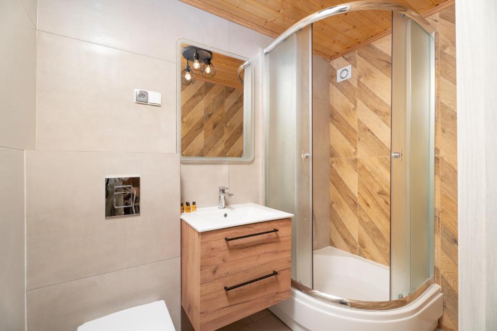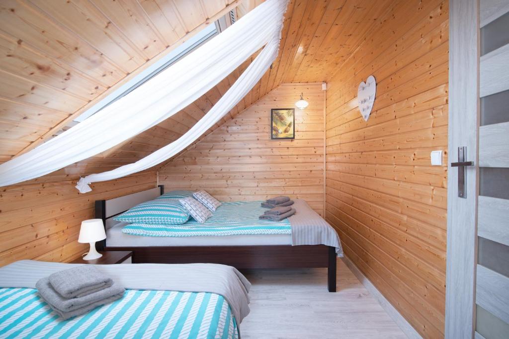 Domek z 2 sypialniami. Guests will find a stovetop, a refrigerator, kitchenware and a microwave in the well-fitted kitchen. The chalet also features a barbecue. The chalet offers air conditioning, a private entrance, a terrace with sea views as well as a private bathroom boasting a shower. The unit has 4 beds. Domek - 6 osobowy. Powierzchnia pokoju ok.: 50 mkw. ;