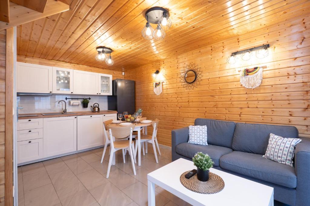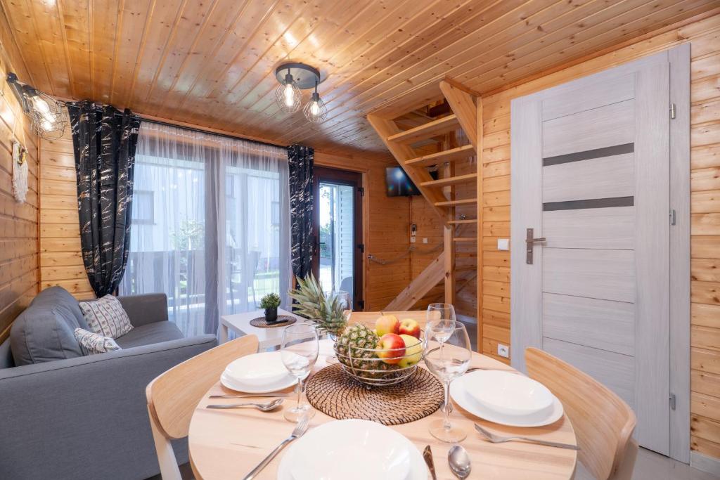 Domek z 2 sypialniami. Boasting a private entrance, this air-conditioned chalet comes with 1 living room, 2 separate bedrooms and 1 bathroom with a shower. Guests will find a stovetop, a refrigerator, kitchenware and a microwave in the kitchen. The chalet also includes a barbecue. Featuring a terrace with sea views, this chalet also features a wardrobe and a flat-screen TV. The unit has 4 beds. Domek - 6 osobowy. Powierzchnia pokoju ok.: 50 mkw.